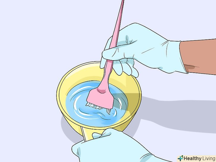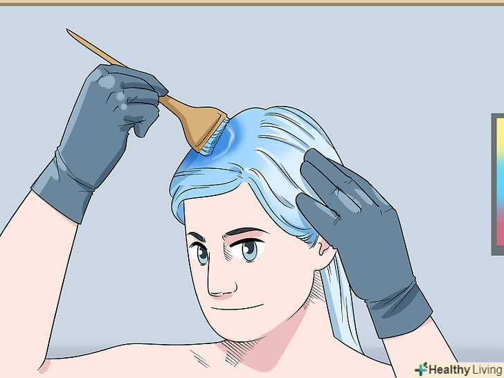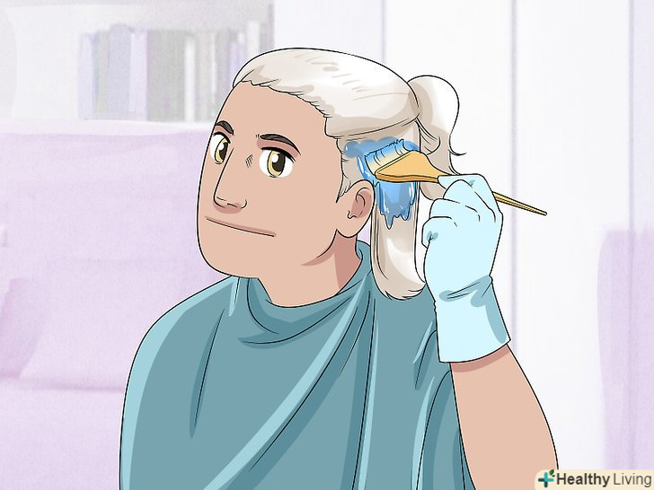 Якщо ваше волосся залишилося темним,Освітліть їх . якщо після засобу для видалення фарби волосся залишилися темними, слід освітлити їх, щоб після фарбування вони стали дійсно синіми. [2] Набори для освітлення волосся продаються в магазинах косметики і перукарських приладдя. Можна також звернутися в перукарню для професійного освітлення.- Придбайте набір для освітлення волосся.