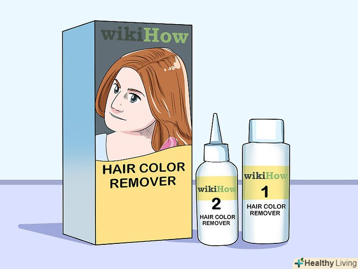 Використовуйте засіб для видалення фарби з волосся. цей засіб може знадобитися вам в тому випадку, якщо на вашому волоссі залишилася фарба після попереднього фарбування. Засіб для зняття фарби не знебарвлює волосся, а просто видаляє з них фарбу, завдяки чому волосся можуть стати трохи світліше. Якщо після видалення фарби волосся залишилися темними, вам доведеться освітлити їх.- При використанні засобу для видалення фарби дотримуйтесь прикладеної до нього інструкції.