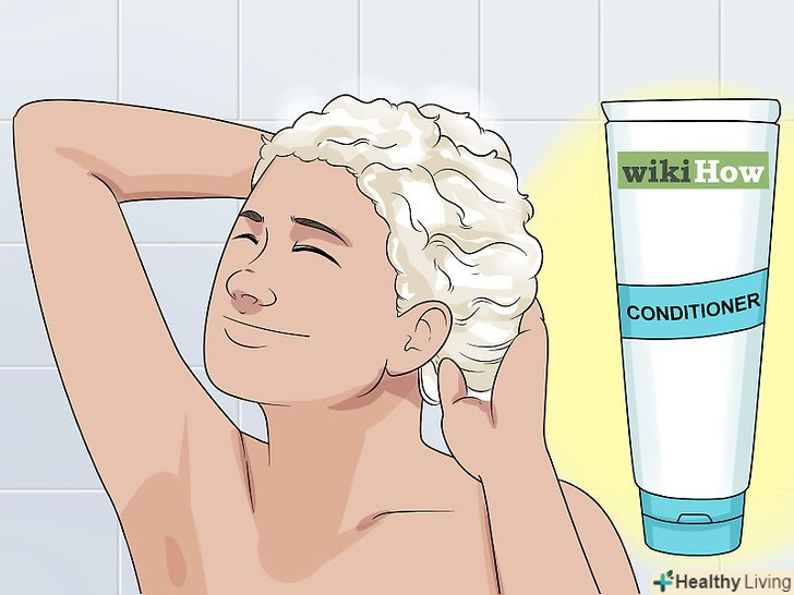 Відновіть пошкоджене волоссяЗа допомогою глибокого кондиціонування. засіб для видалення фарби і освітлювач можуть пошкодити волосся і висушити їх. Оздоровіть волосся за допомогою протеїнової маски або кондиціонера для глибокого зволоження. [4]- Дотримуйтесь інструкції по застосуванню. Нанесіть кондиціонер для глибокого зволоження на чисте вологе волосся і залиште на кілька хвилин.