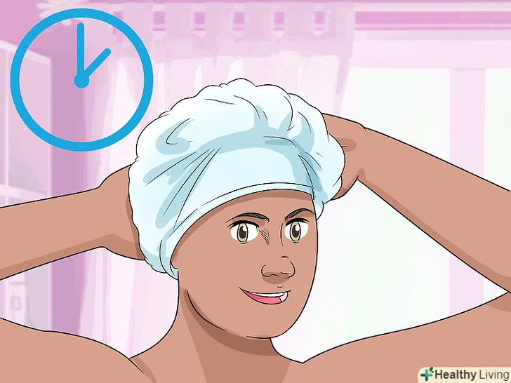 Залиште фарбу на вказане в інструкції час. після того як ви завдасте фарбу на всі пасма, надіньте на голову шапочку для душу або пластиковий пакет і встановіть таймер на потрібний час. Тривалість фарбування залежить від конкретного виду фарби. Для деяких фарб потрібно близько години, в той час як іншим достатньо 15 хвилин.- Слідкуйте за часом, щоб фарба не залишалася на волоссі занадто довго.