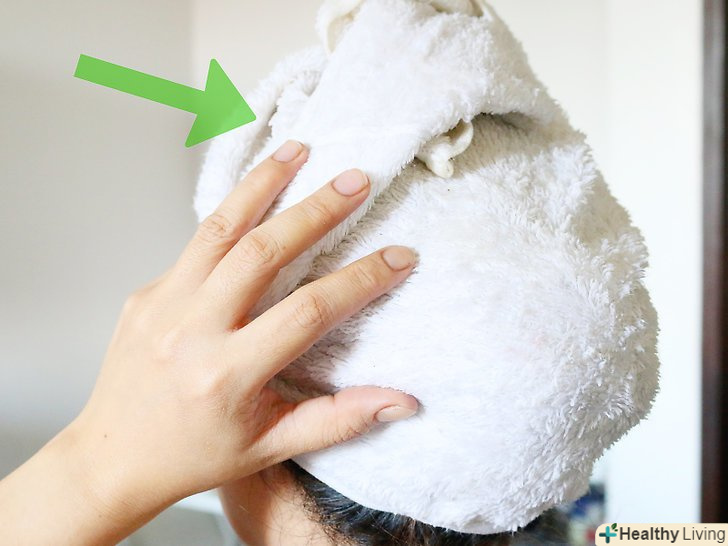 Обмотайте голову теплим і мокрим бавовняним рушником. якщо ви хочете провести глибоке кондиціонування волосся, тоді обмотайте голову теплим бавовняним рушником і не знімайте його протягом години. [6] Тепло збільшить ступінь поглинання вітаміну Е В волосся і шкіру голови.- Щоб зробити рушник теплим і мокрим, заповніть раковину або велику миску гарячою водою і занурте в неї рушник. Вичавіть з рушники зайву воду і обмотайте його навколо голови.