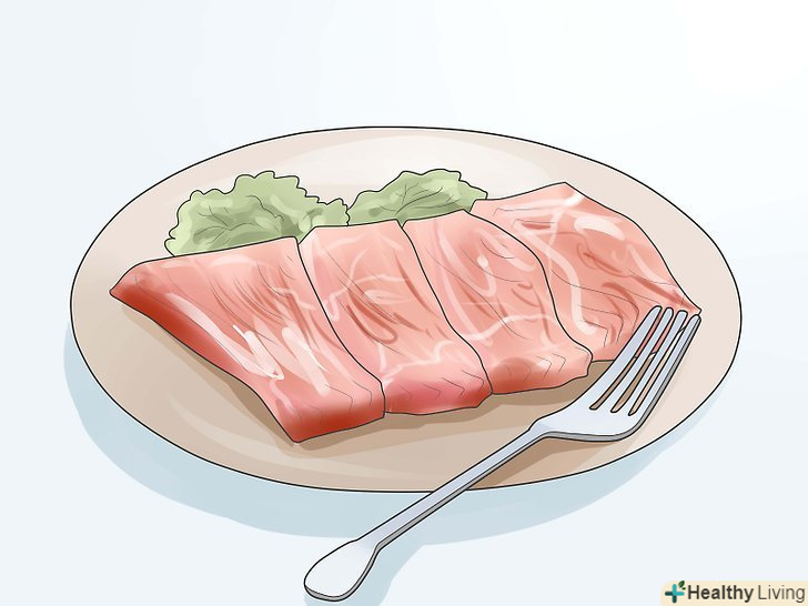 Їжте сьомгу. сьомга-найкращий друг здорової дієти. У ній містяться жирні кислоти омега-3, а також вітамін D і білки, які важливі для сили і здоров'я волосся. Омега - 3 дійсно важливі для здоров'я волосся, так як вони складають приблизно 3% стрижня волоса, а також входять до складу природних речовин, що виділяються тілом, які підтримують рівень вологи в шкірі голови. [6]- Також жирні кислоти омега-3 зустрічаються і в іншій рибі: в форелі, оселедця, скумбрії і сардинах. Якщо ж вам не подобається риба, спробуйте їсти більше авокадо і гарбузового насіння.