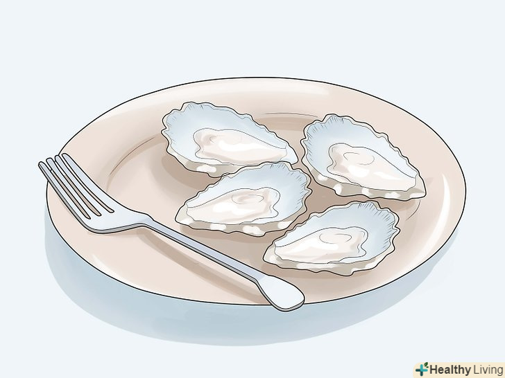 Їжте устриці. у них високий вміст цинку. Цинк також важливий для здоров'я волосся. Його недолік в споживаної їжі призводить випадання волосся. Також недолік цинку може призводити до сухості шкіри голови і лупи. У 85 грамах устриць міститься п'ятиденна норма цинку. Також устриці багаті білком, що також корисно для вашого волосся.- Цинк також міститься в горіхах, яловичині, яйцях, збагачених злаках і цільнозерновому хлібі.