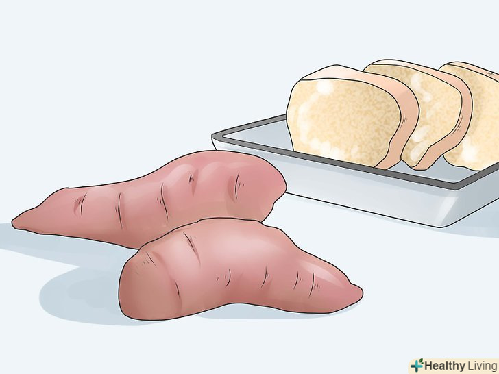 Їжте солодку картоплю. солодка картопля багата бетакаротином – антиоксидантом, який сприяє виробленню вітаміну A. вітамін A стимулює вироблення речовин, що сприяють зволоженню шкіри голови. Нестача вітаміну А може призводити до сухої сверблячої шкіри голови і лупи.- Іншими джерелами бетакаротину є: мускусна диня, морква, манго, абрикоси і гарбуз.