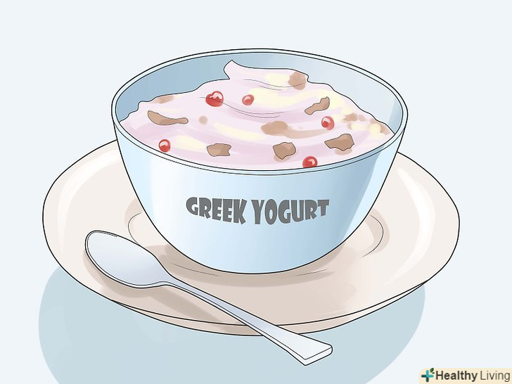 Їжте грецький йогурт. він багатий білком (корисним для волосся), вітаміном В5 (також називається пантотеновою кислотою, яку Ви можете знайти у складі багатьох продуктів для волосся) та вітаміном D, що важливо для здоров'я волосяних фолікулів.- Інші аналогічно корисні молочні продукти: пресований сир, знежирений сир, знежирене молоко.