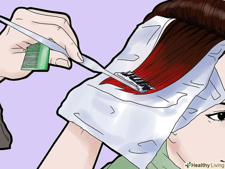Візьміть пасмо волосся і щедро намажте барвником. нанесіть наскільки можна ближче до шкіри голови. (Якщо є барвник на волосистій частині голови, він повинен змитися шампунем.) Повністю пофарбуйте волосся. Використовуючи стару зубну щітку або відтіночну кисть, ви зможете творити чудеса, роблячи смужки. Якщо ви берете великі пасма, їх найлегше просто натерти руками і прочесати пальцями до кінця.