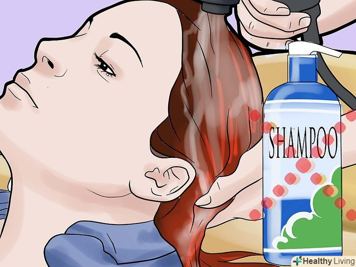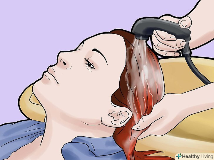 Промийте. використовуйте настільки холодну воду, як ви можете витримати! Це допомагає зберегти і зафіксувати колір, утримуючи його яскравим і живим якомога довше.- Промивайте волосся, поки вода не стане прозорою або як тільки невелика кількість фарби буде змиватися з усіх частин голови.