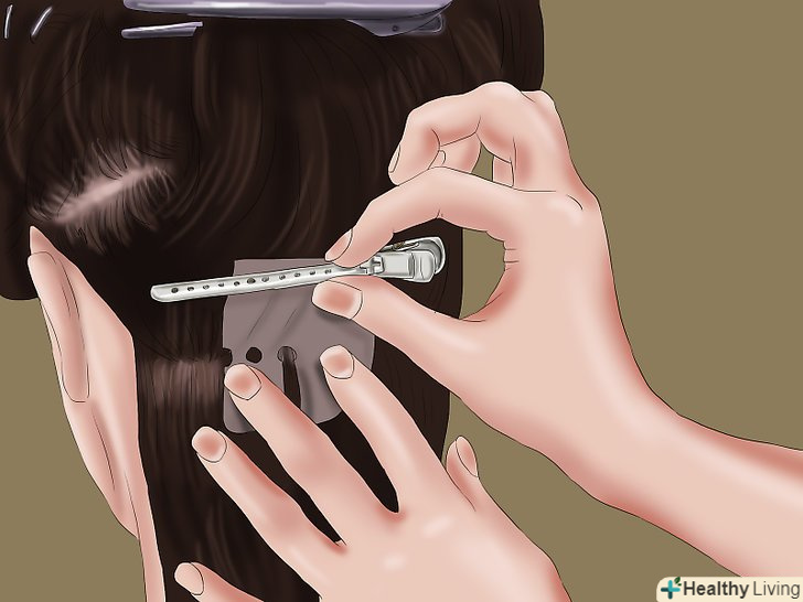 Поділіть волосся на секції, почавши знизу. розділіть волосся приблизно в 5 см.від шиї, заколовши все, що знаходиться вище, вгору.