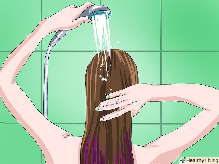 Очистіть волосся. існує багато очищувальних шампунів у продажу, які допомагають очистити локони від залишків будь-яких речовин, які можуть перешкодити приклеювання накладних пасом до вашого волосся.- Не застосовуйте кондиціонер та інші засоби для волосся після їх очищення, інакше ви просто додасте в волосся ті речовини, які тільки що змили очищує шампунем.