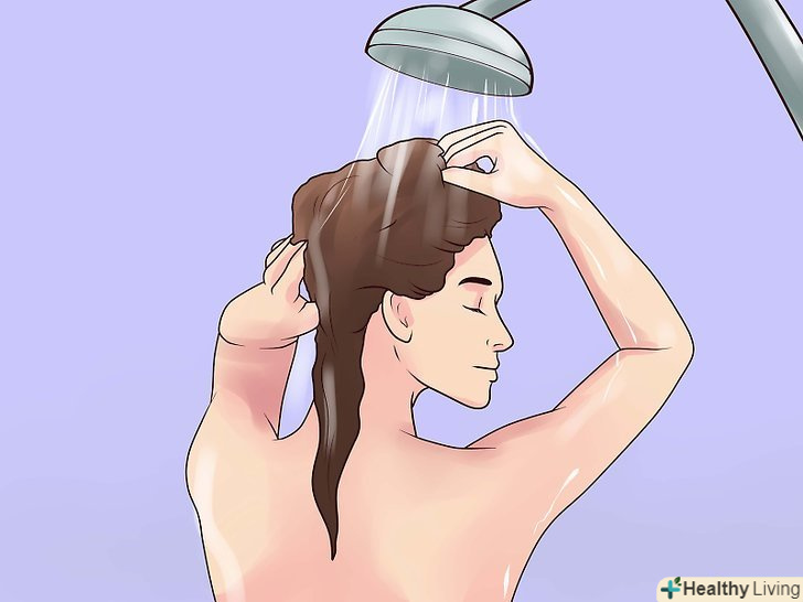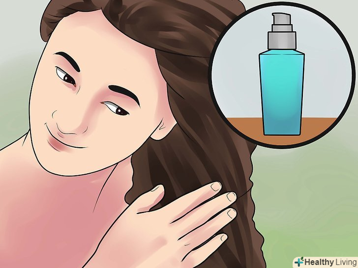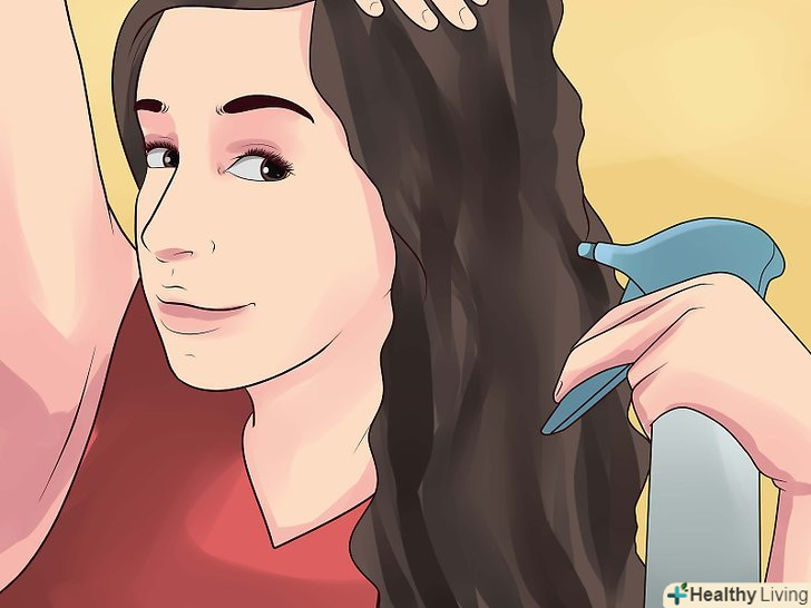Злегка зволожите волосся. змочіть волосся водою з пляшки з розпилювачем або на секунду підставте голову під душ або кран з низьким напором води. Більшість засобів для волосся необхідно наносити на вологе волосся, але не слід мочити волосся занадто сильно, так як це зробить їх ламкими. [2]