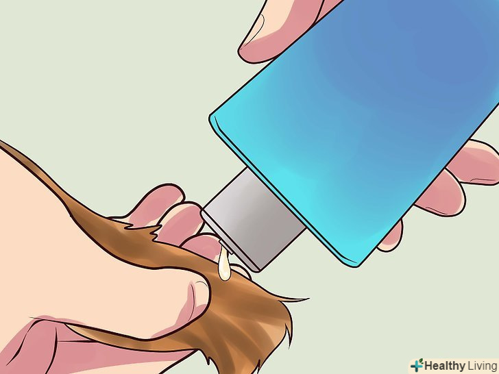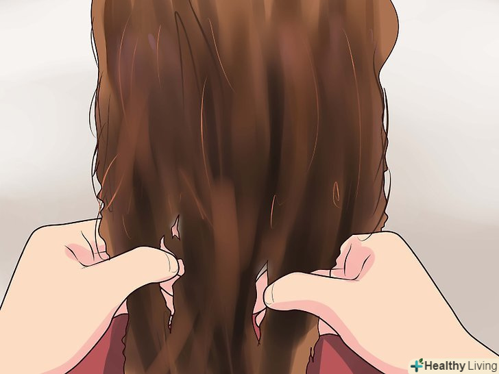 Втирайте засіб у волосся. Налийте обраний засіб в долоню. Якщо ваше волосся нижче плечей, використовуйте аж до двох пригоршнів. Нанесіть засіб по всій довжині волосся, включаючи кінчики. Втирайте його в кожне пасмо окремо, а не по всій поверхні голови відразу, інакше волосся заплутаються ще більше. [3]