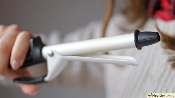 - Завивайте волосся по невеликій пасма за раз. візьміть тонку пасмо і оберніть її навколо плойки. Не затискайте волосся як щипцями; замість цього залиште вільним кінчик довжиною 2,5–5 см і притримуйте за нього. Потримайте так кілька секунд, а потім відпустіть. [8]