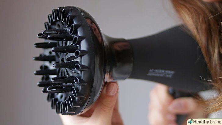 Використовуйте фен зДифузором . дифузором називається додаткова насадка до фену. Вона має круглу форму зі штирями дифузор зменшує швидкість потоку повітря, що надходить з фена, не даючи волоссю розпушитися. Він також допоможе при створенні хвиль і завитків. [11] , [12]- Використовуйте середню або низьку температуру. Найкраще використовувати холодний режим, так як низька температура сприяє кращій фіксації зачіски.