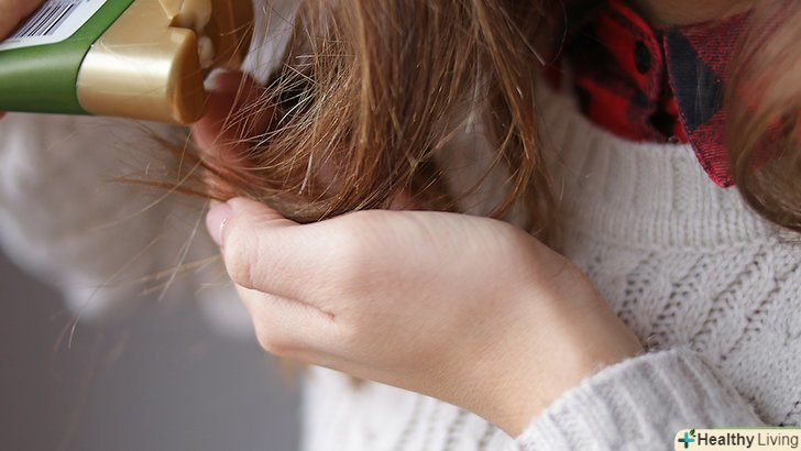 - Видавіть на долоню мус в кількості розміром з п'ятирублевую монету. Акуратно розподіліть його по всьому волоссю. Для довгого волосся вам може знадобитися більше мусу. Якщо волосся у вас короткі, почніть з меншої кількості мусу.