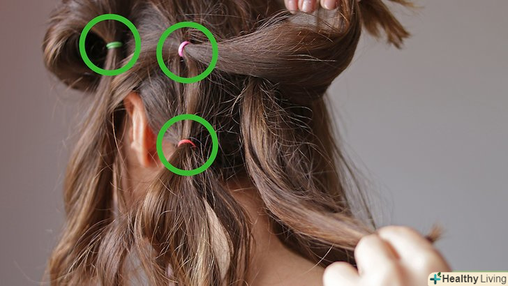 Нанесіть текстуруючий спрей. розпиліть текстуруючий спрей на всю масу волосся. Це засіб допоможе зафіксувати хвилі.- Розділіть волосся на 4-5 кісок. розділіть волосся на 4-5 пасом. Заплетіть кожне пасмо в косичку. Зафіксувати кінець косички можна гумкою. Також можна просто скрутити або стиснути кінчик, і він, можливо, буде триматися (особливо якщо ви наносили досить текстуруючого спрею), але гумка зафіксує його надійніше. [3]