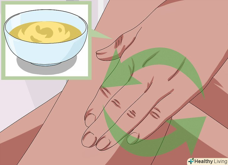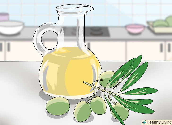 Нанесіть оливкову олію. для зручності налийте невелику кількість масла в чашку. Потім вмочіть Пальці в масло і масажними рухами нанесіть його тонким шаром на необхідну ділянку шкіри. Використовуйте більше масла для ділянок з густим волосяним покривом. [4]