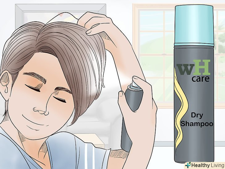 Нанесіть сухий шампунь на корені, щоб надати волоссю об'єму. якщо ви переживаєте через те, що волоссю не вистачає обсягу, спробуйте замінити звичайний шампунь сухим. Нанесіть сухий шампунь на корені і розподіліть засіб по довжині волосся пальцями. Потім розчешіть волосся в будь-якому напрямку. [12]- Цей прийом дозволить створити недбалий повсякденний образ.