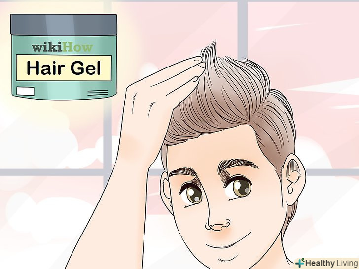 Для розпрямлення вихрів використовуйте фіксує гель і гребінь. якщо окремі прядки ніяк не укладаються, їх можна укласти гребенем з зубами середнього розміру в потрібну сторону. Потім видавіть невелику кількість гелю на руки і нанесіть на пасмо. [10]- Можна ще раз пройтися зверху гребенем, щоб надійно закріпити пасмо.