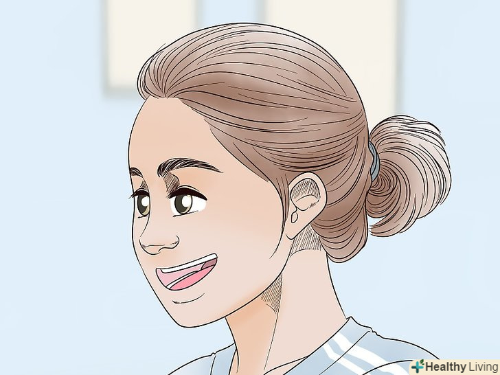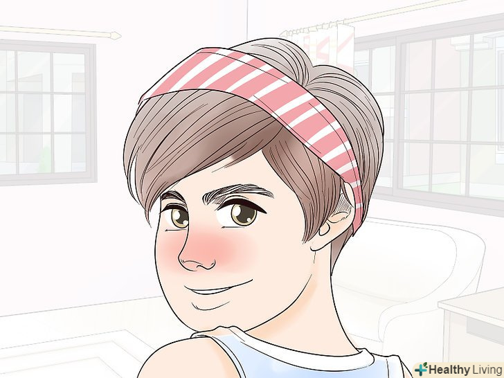 Носіть пов'язки і головні убори, щоб приховати волосся невдалої довжини. якщо вам хочеться добре виглядати навіть в ті дні, коли волосся "відмовляються" укладатися, просто підберіть пов'язку або капелюх. Можна надіти пов'язку з тканини або металевий або пластиковий обруч будь-якого виду і кольору. Спробуйте носити різні головні убори: капелюхи, кепки, Кепі. Носіть головний убір по-різному - на потилиці або щільно на голові. [16]- Якщо у вас еластична пов'язка, натягніть її на голову і протягніть в неї волосся.
