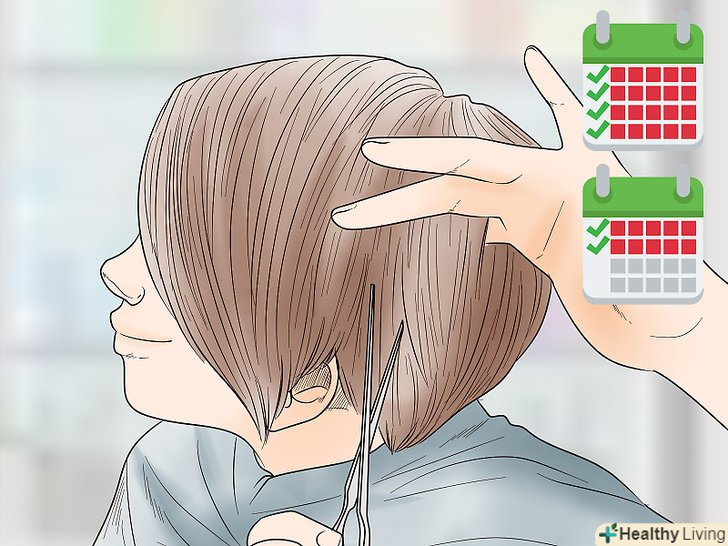 Щоб волосся виглядало краще, підрізайте кінчики кожні 6-8 тижнів. так волосся не будуть сіктися, і відросло пасма не почнуть обламуватися. Якщо підрізати кінчики рідко, вам не вдасться відростити стрижку швидко. Намагайтеся робити це регулярно, щоб волосся виглядали акуратно. [19]- Найкраще підстригатися в салоні, але можна навчитися робити це самостійно .
