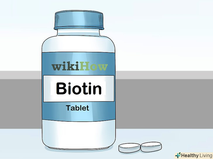 Приймайте біотин в таблетках, щоб волосся росло швидше. важливо не тільки добре харчуватися, але і приймати вітаміни для росту волосся. Біотин-один з таких вітамінів. Він корисний для волосся, шкіри і нігтів. Цей вітамін належить до групи B і міститься в яйцях, авокадо і лососі. Приймайте по одній таблетці щодня, але перед початком прийому уважно прочитайте інструкцію. [4]- Можна також купити спеціальні вітаміни для волосся, шкіри і нігтів.
