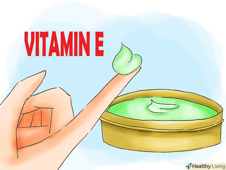 Використовуйте лосьйон з вітаміном Е. лосьйон, який містить вітамін Е, пом'якшує шрами і сприяє їх загоєнню. Однак використовуйте лосьйон тільки в тому випадку, якщо пройшло не менше одного місяця після появи шраму. Зазначений термін необхідний для загоєння рани. В іншому випадку застосування лосьйону може привести до розростання рубцевої тканини. [2] [3]- Перед застосуванням засобу нанесіть невелику його кількість на шкіру обличчя, щоб переконатися, що у вас немає алергічної реакції на обраний вами лосьйон.