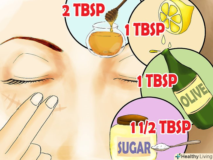 Приготуйте скраб з лимонного соку, цукру і меду. лимонний сік має в'яжучі властивості і сприяє зникненню шрамів, викликаних акне. Оскільки лимонний сік містить кислоту, він здатний видаляти мертві клітини шкіри і пом'якшувати шрами від прищів. Згодом вони зникають повністю. Нанесіть маску на основі лимонного соку на шкіру обличчя, що сприятиме пом'якшенню шрамів і подальшого їх зникнення. [4]- Приготуйте скраб безпосередньо перед його застосуванням. Він повинен бути свіжим. Змішайте дві столові ложки меду, одну столову ложку лимонного соку, одну столову ложку оливкової олії і півтори столові ложки цукру.