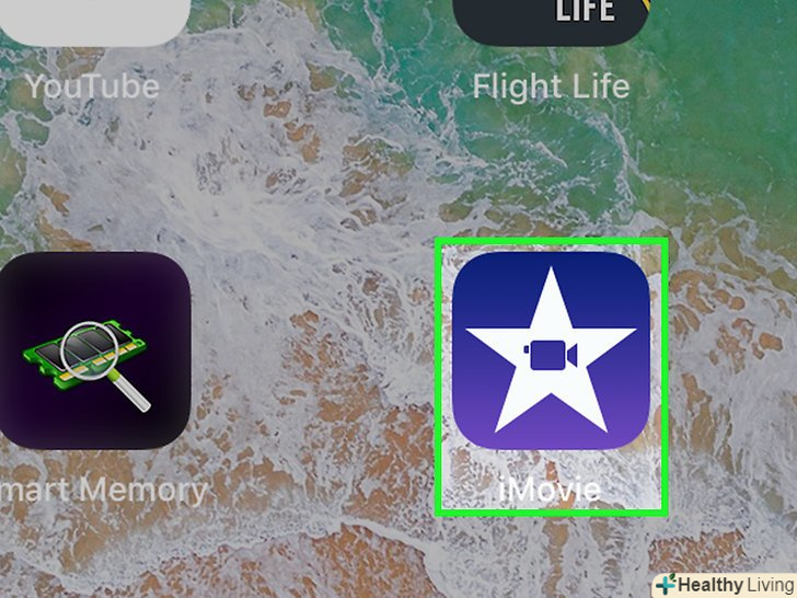 Відкрийте програму iMovie. це значок фіолетового кольору у вигляді білої зірки з відеокамерою в середині.