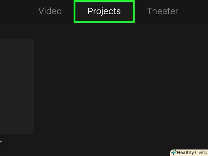 Натисніть на вкладкуПроекти.- Якщо відео відкриється в iMovie або іншій вкладці, тоді натисніть "назад" у верхньому лівому куті екрану, щоб відкрилися три вкладки:Відео, Проекти, і Театр.