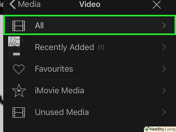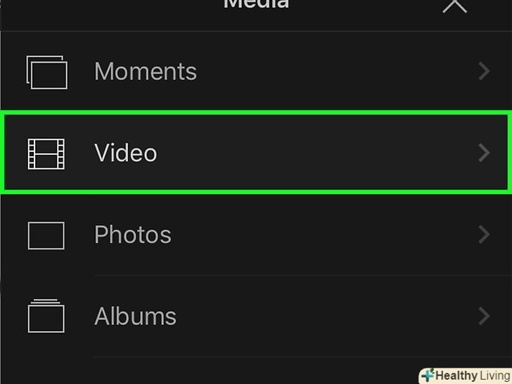 Виберіть розташування відеофайлу.скористайтеся меню, щоб вибрати альбом, додаток або місце, де знаходяться ваші відеофайли.