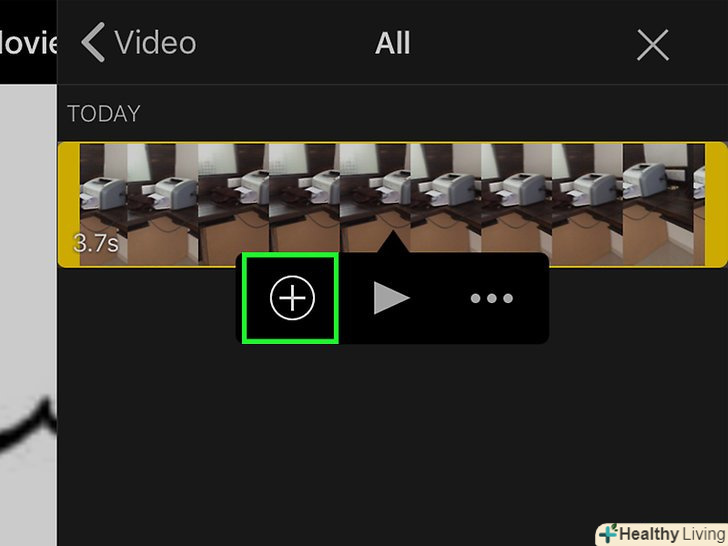 Натисніть+.ця кнопка знаходиться в лівій частині екрана, поруч або під нею знаходиться кнопка попереднього перегляду вашого відеопроекту.