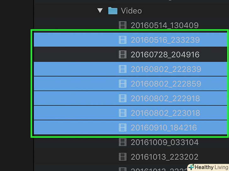 Натисніть на відео, яке хочете додати. коли ви виберете папку або місце, де знаходиться відео, праворуч з'явиться список з відеофайлами.- Затисніть клавішу⌘, якщо потрібно вибрати відразу кілька файлів.