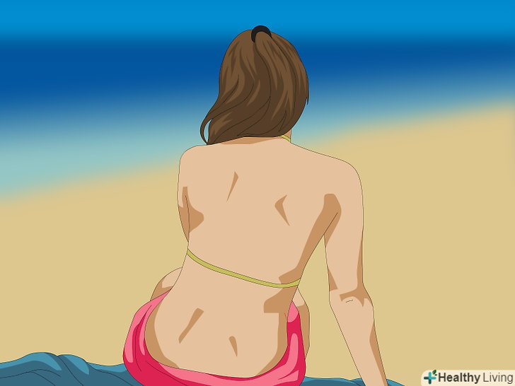 Приймайте сонячні ванни. сонячні ванни припускають, що для досягнення рівномірного засмаги ви повинні лежати або сидіти під прямими променями сонця. Обов'язково наносите сонцезахисний крем з SPF, який захистить вашу шкіру.- Важливо поступово збільшувати час прийняття сонячних ванн. Залежно від типу вашої шкіри, вважається безпечним починати з 10-30 хвилин кілька разів на тиждень. З часом ви зможете проводити більше часу на сонці, так як ваша шкіра почне краще поглинати сонячні промені. Не залишайтеся на сонці довгий час, інакше ваша шкіра може почервоніти і навіть обгоріти. [1]