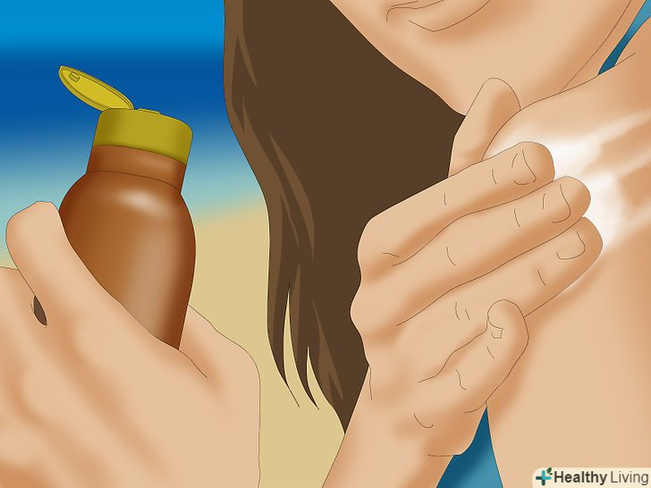 Завжди застосовуйте сонцезахисний крем. всупереч поширеній думці, ви зможете засмагнути, якщо будете використовувати сонцезахисний крем. Без використання засобів з SPF ви ризикуєте отримати опік, зневоднення, що може привести до розвитку раку шкіри.- Рекомендується використовувати крем з рівнем захисту не менше SPF 15. При наявності дуже світлої шкіри вам слід використовувати крем з рівнем захисту SPF 30. [2]