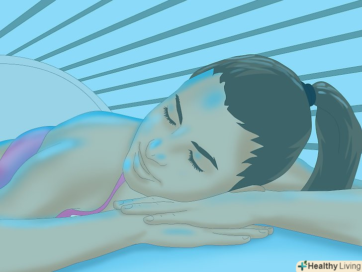 Сходіть в солярій. у соляріях використовують світло ультрафіолетової лампи для створення УФ-випромінювання. Це УФ-випромінювання діє на шкіру точно так же, як і УФ сонячні промені. Хоча солярії в даний час стали дуже популярними, однак при їх відвідуванні існує безліч ризиків для здоров'я (в тому числі ризик розвитку раку шкіри), тому будьте обережні, якщо все ж вирішите отримати загар подібним способом. [5]- Допустимий час перебування в солярії становить 7-11 хвилин. Навіть якщо ви звикли засмагати часто, ніколи не застосовуйте солярій більше 20 хвилин за один сеанс. Рекомендується відвідувати солярій 1-2 рази на тиждень.