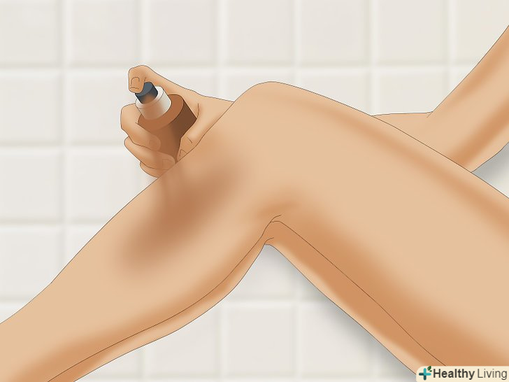 - Використовуйте спрей з автозагаром. Це може бути найбільш простим способом отримання засмаги в домашніх умовах, проте його складно наносити на важкодоступні місця. Можете спробувати цей метод, якщо у вас є можливість заручитися допомогою іншої людини. [8]