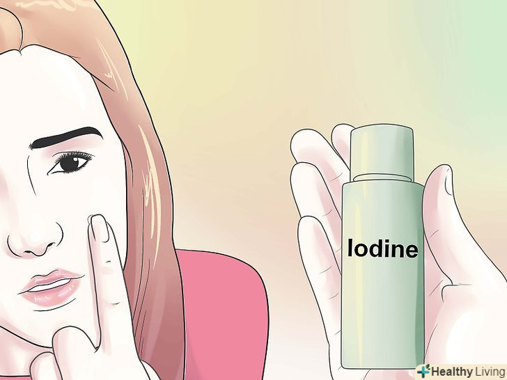 Використовуйте йод. купити концентрований йод не так вже просто, проте звичайний розчин можна придбати в будь-якій аптеці.- Розбавте йод водою в співвідношенні 1 до 5. Використовуючи ватяну паличку або тампон, нанесіть отриманий розчин на родимку. Потримайте йод на шкірі 3-4 хвилини, а потім змийте теплою водою. [14]