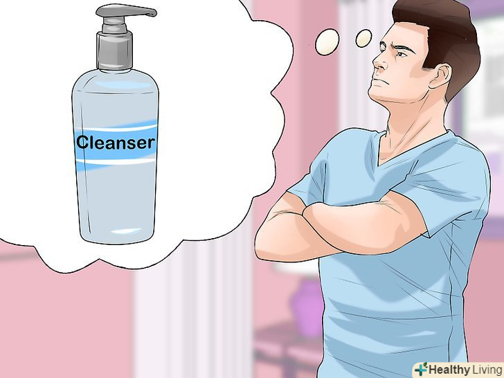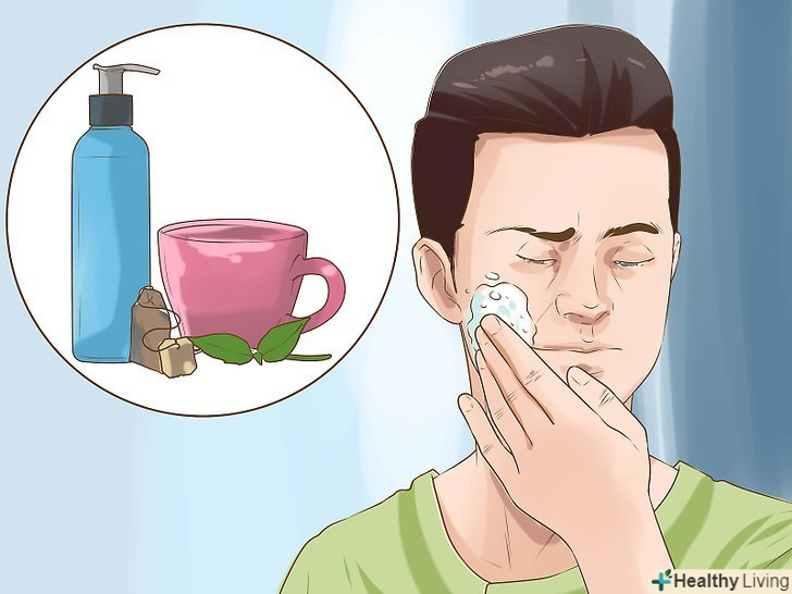 Вмийтеся. кінчиками пальців нанесіть засіб для вмивання на шкіру. Не використовуйте мочалку або губку, так як це може викликати роздратування шкіри і погіршити стан запалених ділянок. Акуратно нанесіть засіб для вмивання на поверхню шкіри круговими рухами. Не тріть шкіру. Тертя і відлущування шкіри може привести до появи ран і шрамів. Вмивайтеся два рази в день. Після вмивання промокніть шкіру м'яким і чистим рушником насухо.- Ніколи не видавлюйте, не намагайтеся сковирнути і не торкайтеся до прищів. В іншому випадку такі дії можуть привести до появи сильного запалення, утворення шрамів і уповільнення процесу загоєння. [16]