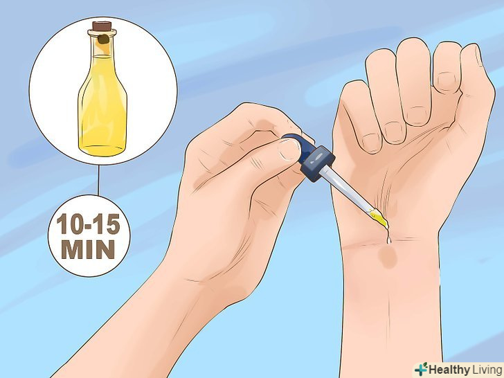Проведіть тест на шкірі на чутливість до ефірного масла. перш ніж застосовувати будь-які ефірні масла, одержувані з рослин, їх потрібно тестувати на індивідуальну чутливість. Капніть одну краплю ефірного масла на зап'ясті і почекайте 10-15 хвилин. Оцініть результат. Якщо ви побачите невелику висип, яку може супроводжувати свербіж, швидше за все, у вас алергія на вибране масло. Якщо вищеописаних симптомів немає, процедуру можна проводити. Якщо у вас є чутливість до певного маслу, підберіть те, яке не буде викликати у вас алергічної реакції. [2]- Пам'ятайте, що у вас може з'явитися чутливість до ефірного масла, на яке раніше не було подібної реакції. З цієї причини завжди важливо проводити проби на індивідуальну чутливість до ефірного масла.