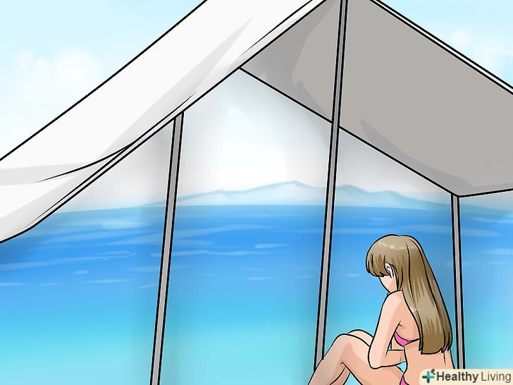 Залишайтеся в тіні. навіть якщо ви нанесли сонцезахисний крем, ви все одно будете піддаватися впливу сонячних променів. Залишаючись в тіні або використовую парасольку від сонця, ви захистите себе від шкідливого впливу сонячних променів. [29]- Уникайте перебувати на сонці в "години-пік" сонячної активності. Сонце найбільш активно в період з 10 до 14 годин. По можливості, уникайте перебувати на сонці в ці години. [30]