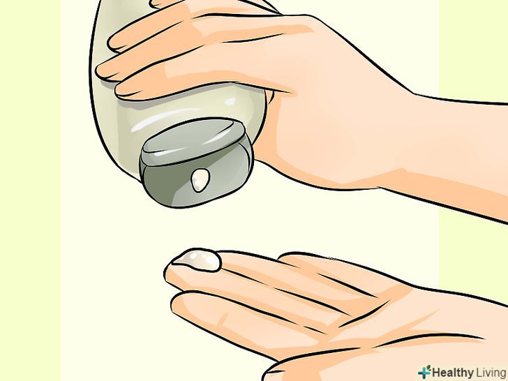 Використовуйте достатню кількість крему. найбільша помилка при використанні сонцезахисних засобів – нанесення недостатньої кількості засобу. Дорослій людині потрібно приблизно 30 грам (цілу долоню, або повну стопку) сонцезахисного засобу для нанесення на відкриті ділянки шкіри. [21] [22]- Щоб нанести сонцезахисний засіб у вигляді гелю, видавіть невелику кульку кошти на долоню. Розподіліть по всіх ділянках шкіри, які будуть піддаватися впливу сонця. Втирайте засіб до тих пір, поки ви не перестанете бачити білі сліди.