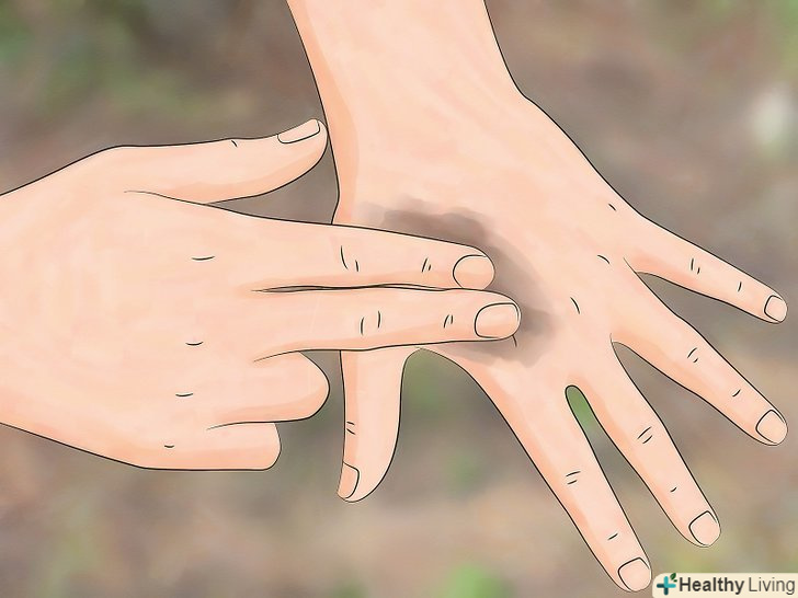 Потріть руки сухою землею, якщо ви знаходитесь на природі. поки плями від соку свіжі і мокрі, втирайте в них невелику кількість землі. Зачекайте, поки земля висохне. Вона вбере в себе деревний сік, і ви зможете з легкістю його видалити. Потім вимийте руки водою з милом, щоб видалити сік з шкіри.