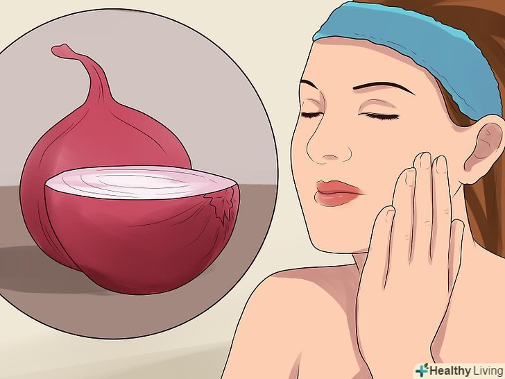 Спробуйте червоний лук. у цибулі містяться кислоти, які можуть освітлити шкіру. Якщо у вас немає лимона, використовуйте цибулю. Очистіть цибулю від лушпиння, розріжте на частини і збийте в блендері або в соковижималці. За допомогою ватного диска нанесіть масу на пігментні плями і залиште на 15 хвилин, потім змийте водою. [10]