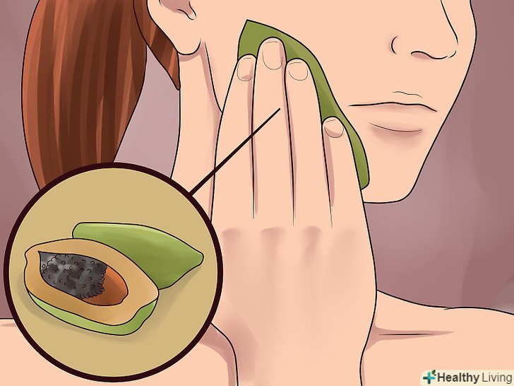 Наріжте папайю. у цих фруктах міститься папаїн - речовина, яка допомагає організму очищати шкіру і зміцнює нові клітини шкіри. Папайя також має вітамін С і вітамін Е, тому цей фрукт ідеально підходить для лікування гіперпігментації. Папаїн досягає своєї максимальної концентрації, коли папайя ще зелена, але ви можете використовувати і стиглі фрукти. Очистіть папайю від шкірки, видаліть насіння і спробуйте один з наступних домашніх способів освітлення шкіри:- Відріжте шматочок папайї і покладіть його на пігментну пляму, яке хочете освітлити. Залиште на 20-30 хвилин. Повторюйте двічі на день.