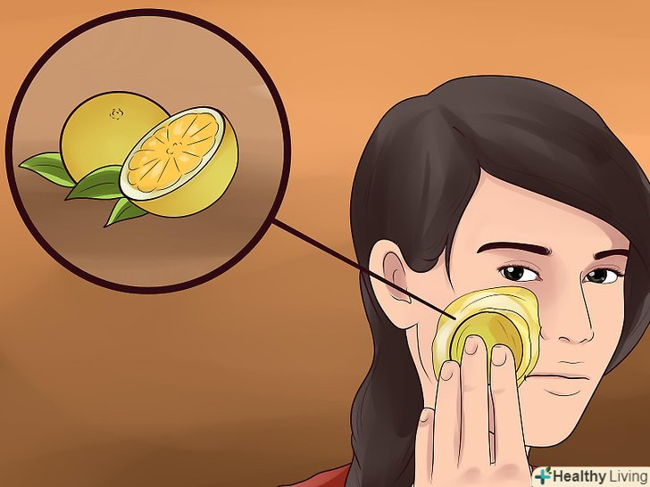 Потріть шкіру цитрусовим фруктом. у цитрусових фруктах міститься велика кількість вітаміну С, також відомого як аскорбінова кислота. Вітамін С дозволяє безболісно видалити верхній шар шкіри. Ось кілька способів застосування цього вітаміну:- Видавіть сік фрукта і втирайте його в шкіру. Жінки століттями використовували лимонний сік для освітлення шкіри, але ви можете також використовувати сік апельсина, грейпфрута або лайма. Розріжте фрукт навпіл і видавіть сік в миску або чашку. За допомогою ватного диска нанесіть сік на пігментні плями, залиште на 20 хвилин, потім змийте. Повторюйте процедуру до двох разів на день.