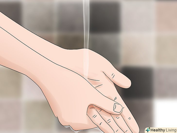 Промийте шкіру теплою мильною водою. намильте мило у воді до утворення піни. Змийте всю пасту з шкіри, щоб напевно видалити пляму від куркуми. Коли шкіра стане чистою, насухо промокніть її м'яким рушником. [8]- Якщо пляма залишилася, приготуйте більше скрабу і повторно очистіть шкіру.