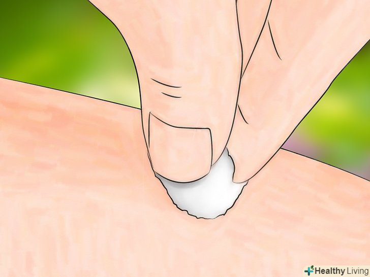 Втирайте масло в шкіру протягом 30 секунд. обережно розітріть пляму круговими рухами. Втирайте масло в пляму, щоб видалити пігмент. Після того як ви розітрете шкіру 30 секунд, залиште масло ще на 1 хвилину, щоб воно краще видалило пляму. [3]
