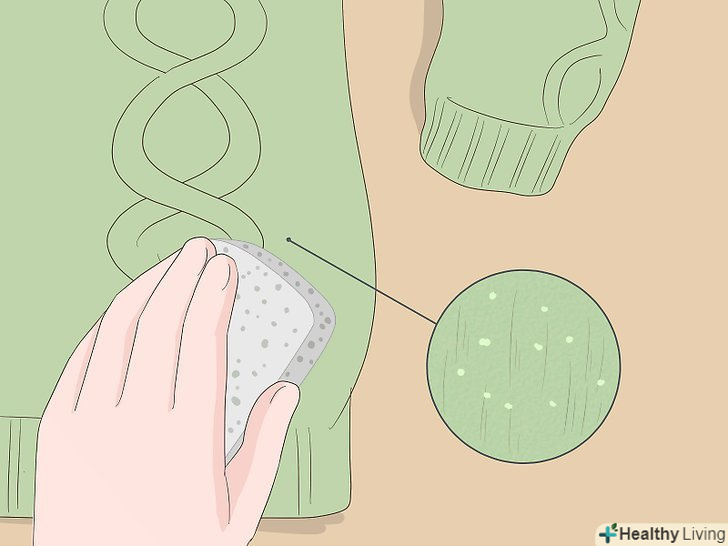 Видаляйте катишки з одягу. М'яка пориста поверхня пемзи відмінно підходить для видалення катишков і ворсинок з тканини. Якщо вам потрібно очистити светр, розкладіть його на рівній поверхні. Обробіть ділянки з катишкамі круговими рухами. Не притискайте камінь занадто сильно, щоб не пошкодити волокна. М'якого натиску буде достатньо, щоб видалити катишки. [7]