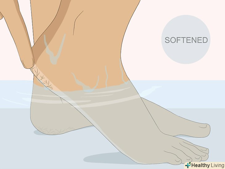 Зачекайте, поки суха шкіра стане м'якою. М'яку і податливу шкіру легше видалити. Обмацайте ступні через кілька хвилин. Якщо шкіра все ще тверда, то почекайте ще деякий час (а при необхідності додайте теплої води). Якщо шкіра м'яка, тоді можна приступати до процесу відлущування. [3]