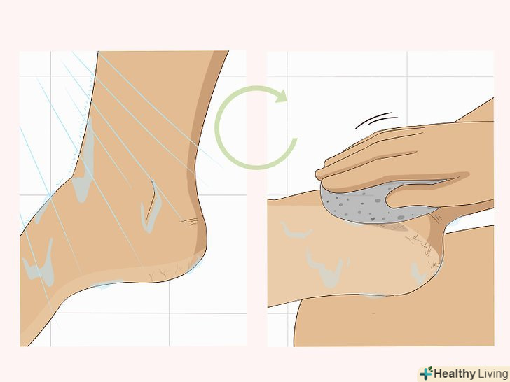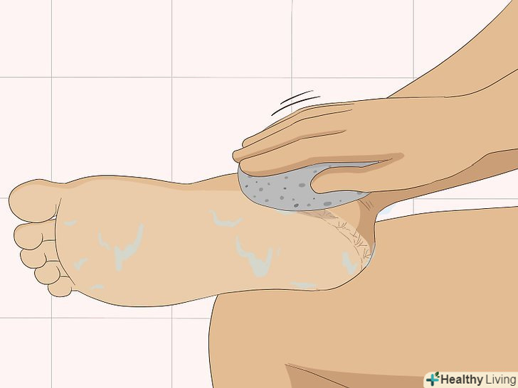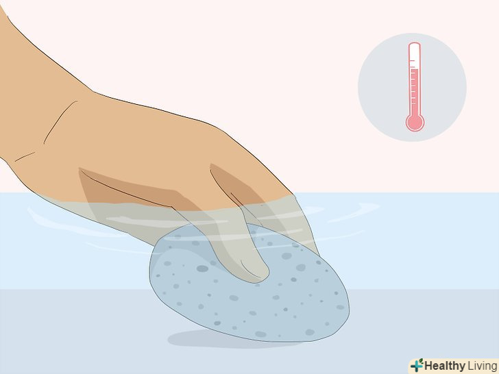 Зволожите пемзу. завдяки цьому камінь буде краще ковзати по поверхні шкіри. Можна намочити пемзу під теплою проточною водою або покласти в ту ж миску з водою, де знаходяться ваші ноги. [4]ПОРАДА ФАХІВЦЯДіана Йеркіс-головний косметолог в Rescue Spa NYC. Здобула освіту з косметології в Інституті Аведа та Міжнародному інституті дерматології. Є членом спільноти ASCP, має сертифікацію за програмами Wellness for Cancer і Look Good Feel Better.головний косметолог Rescue Spa NYCDiana Yerkes